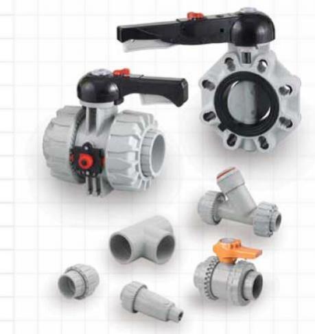 Tubos, acessórios e válvulas em PVC-C de colar, roscar e transição