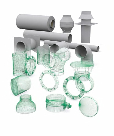 Tubo, acessórios e válvulas em PPs para sistemas de ventilação